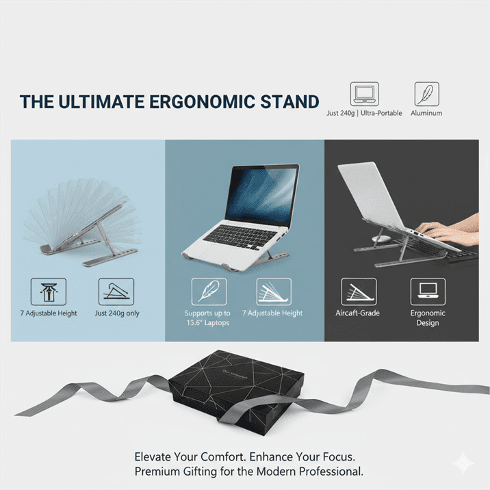 Enhance workspace ergonomics with our sleek laptop stands. Designed to improve posture and airflow, these stands are perfect for office desks and remote work setups.