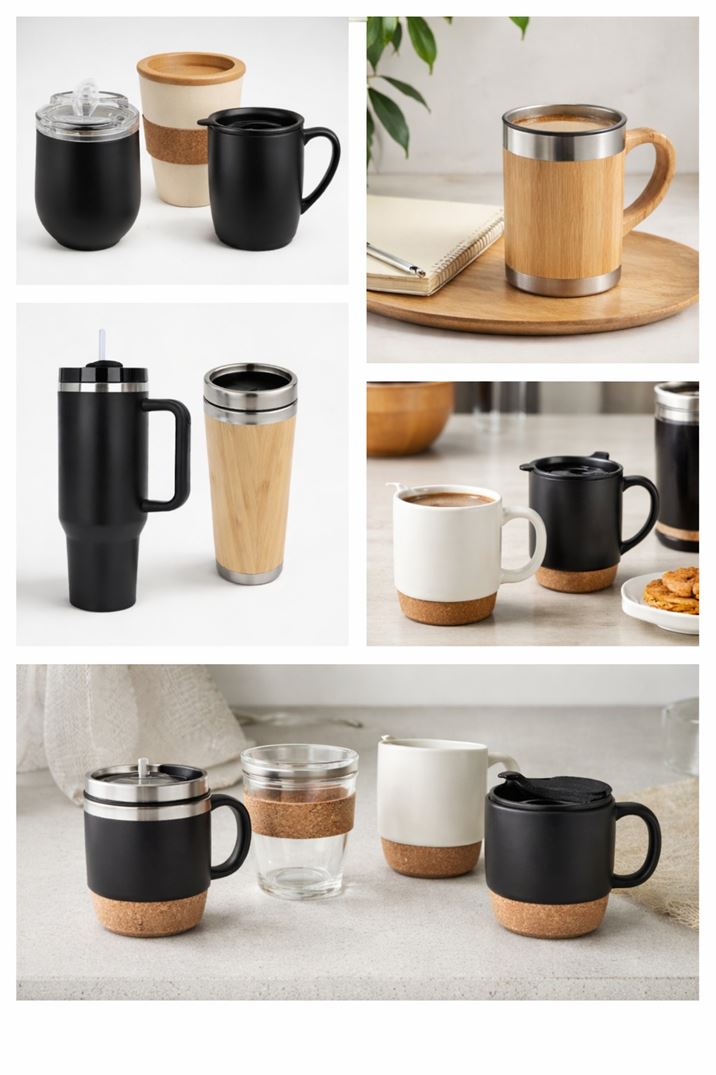 Customizable mugs and tumblers for daily use and promotions.