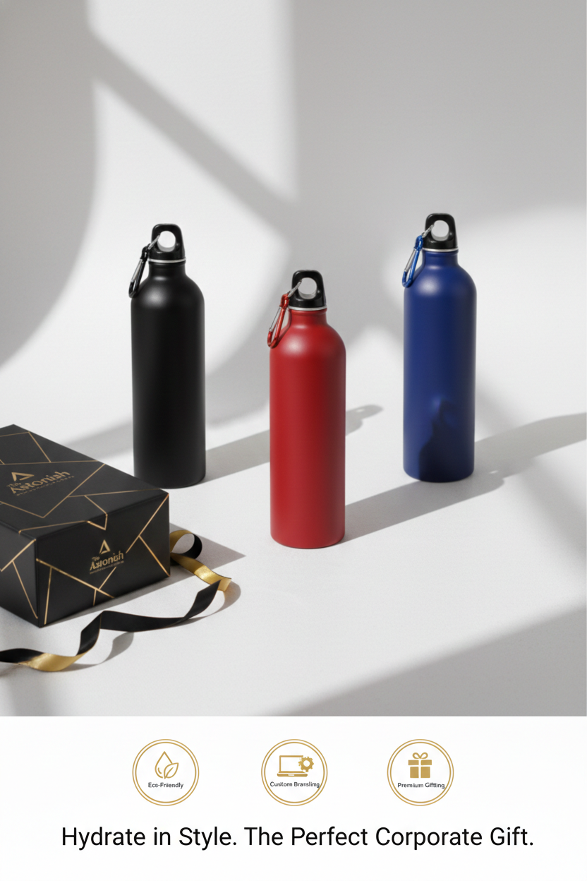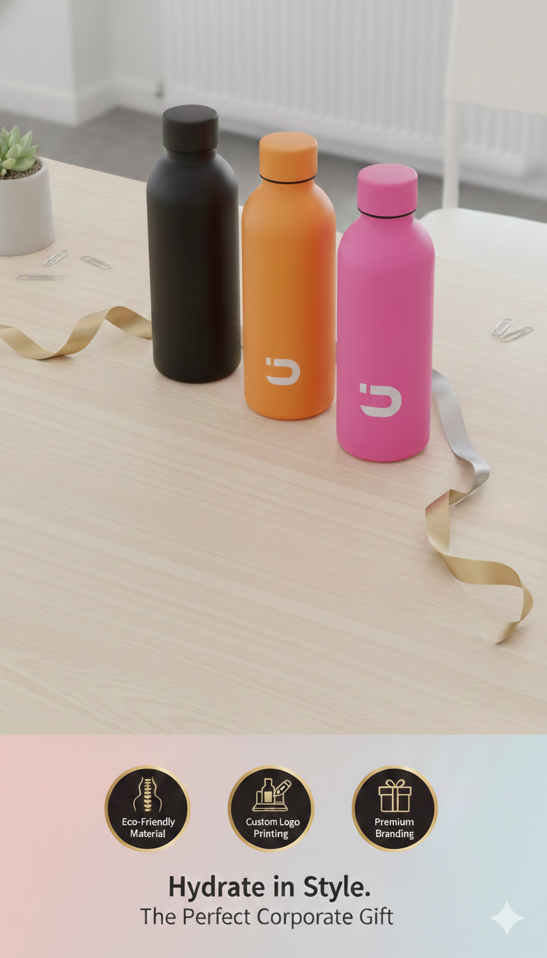 Stay refreshed in style with our premium corporate water bottles designed for modern professionals. Crafted with high-quality materials and sleek finishes, these bottles are perfect for everyday office use, travel, and events. With customizable branding options, they not only promote hydration but also enhance your brand visibility in a sophisticated way.